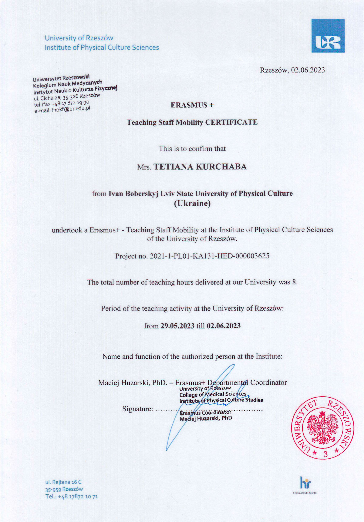 - Instytut badawczo-rozwojowy Lubelskiego Parku Naukowo- Тechnologicznego 2022 рік, (Lublin, Republic of Poland).