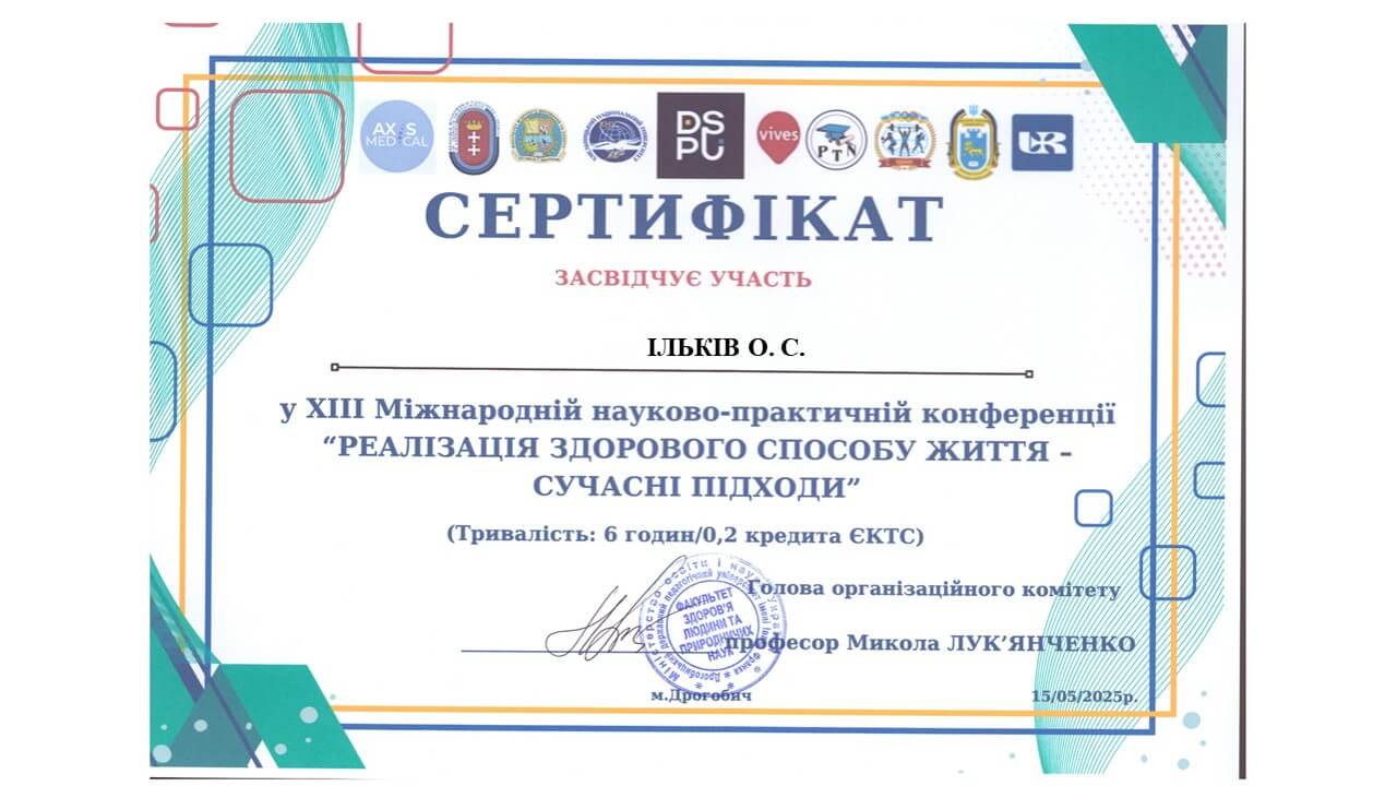 - 2019 р. – Присвоєно вчене звання доцента по кафедрі «Інформатики та кінезіології.