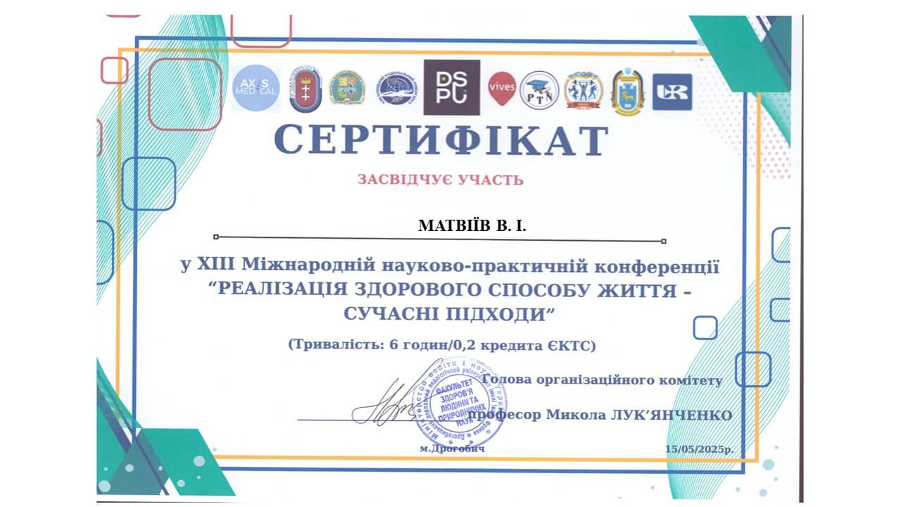 - Магістратура Львівського державного інституту фізичної культури (2005 р.).