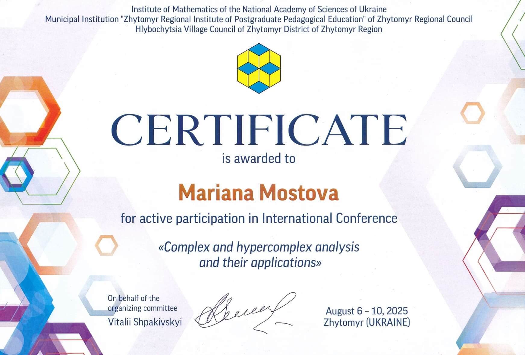 - Львівський національний університет імені Івана Франка (механіко-математичний факультет), 2013р.;