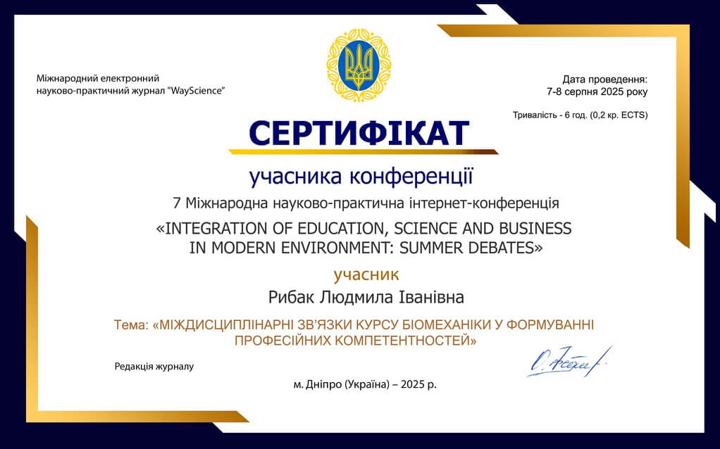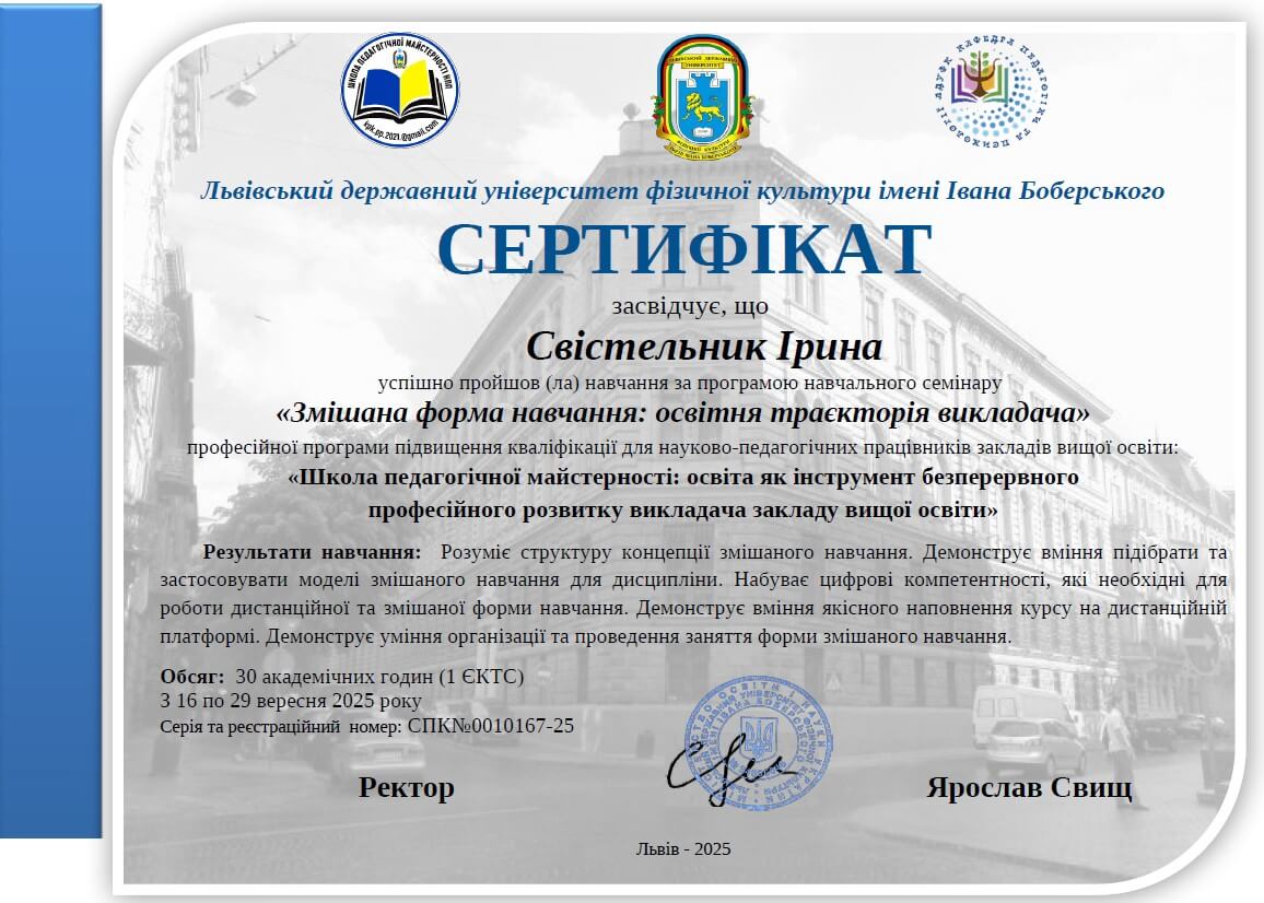 - 2020-2025 рр. – старший викладач кафедри інформатики і кінезіології;