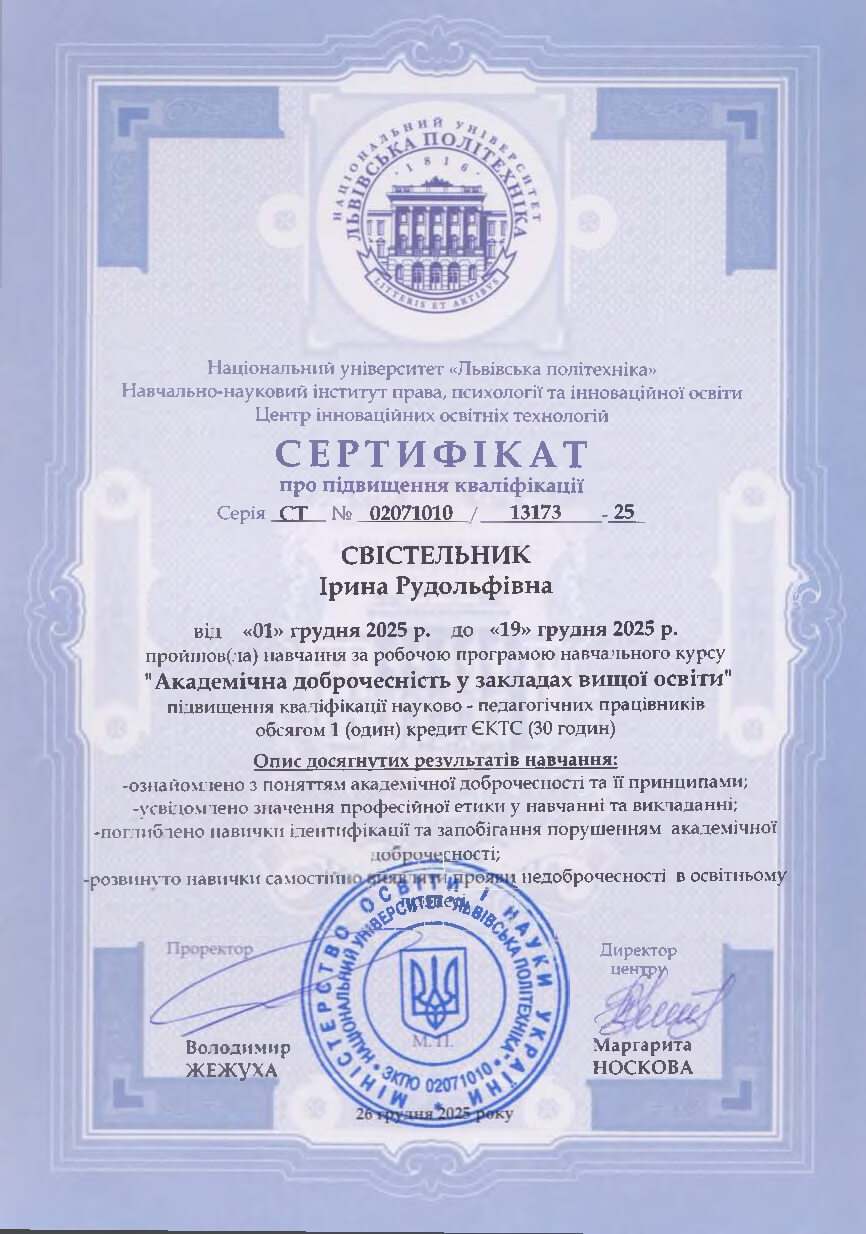• Львівський національний університет ім. Івана Франка спеціаліст;