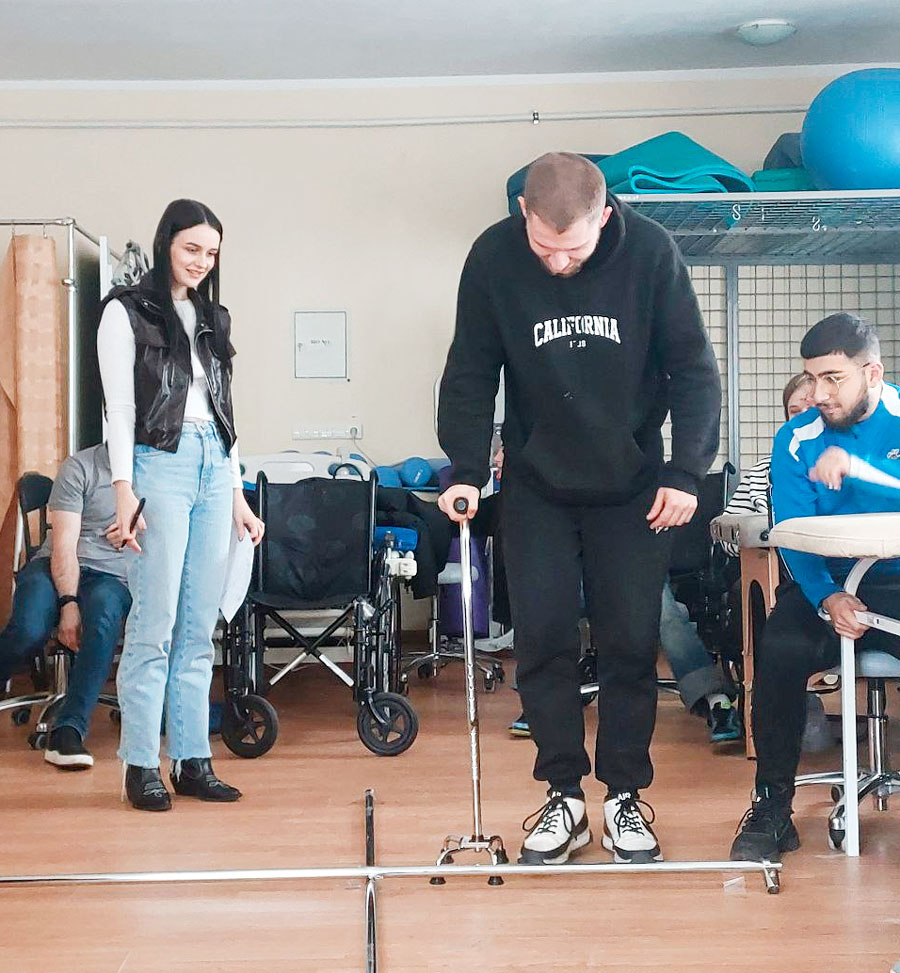 Наші магістранти першого року навчання досліджують методи реабілітаційного обстеження для пацієнтів різних нозологічних груп і, звісно, випробовують їх на собі. Тож у аудиторії можна побачити все: від вимірювання сили м’язів чи артеріального тиску до оцінки координації, рівноваги та навіть кмітливості.