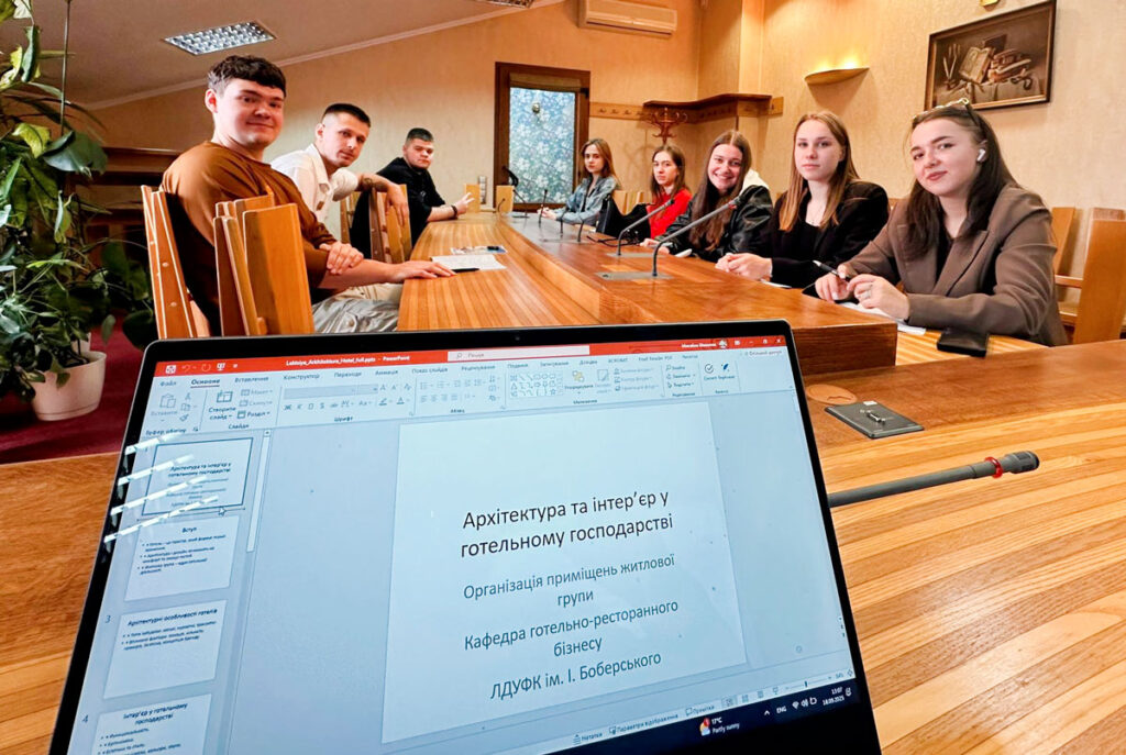 Заняття відбулося у готелі «Швейцарський» та було проведене викладачем кафедри Шевелюком М.М. з ініціативи професорки, завідувачки кафедри готельно-ресторанного бізнесу ЛДУФК імені Івана Боберського Паски М.З.