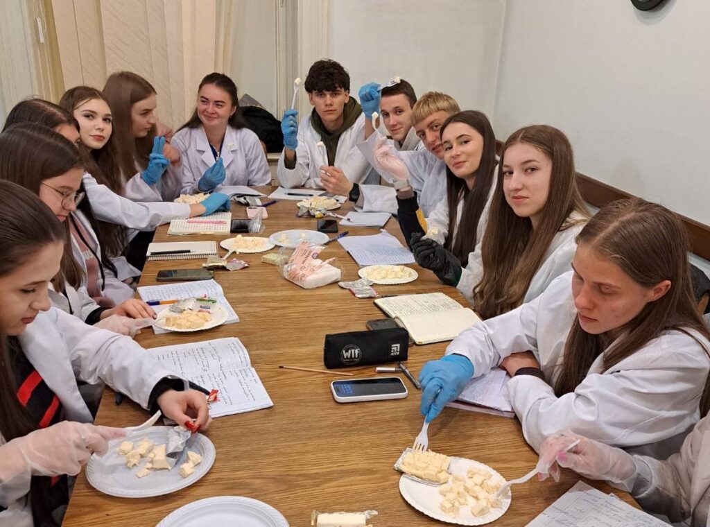 Заняття відбувалося у лабораторії кафедри готельно-ресторанного бізнесу, де студенти мали можливість поглибити знання про асортимент, класифікацію, технологію виробництва та показники якості плавлених сирів, а також набути практичних навичок органолептичної оцінки продукції.