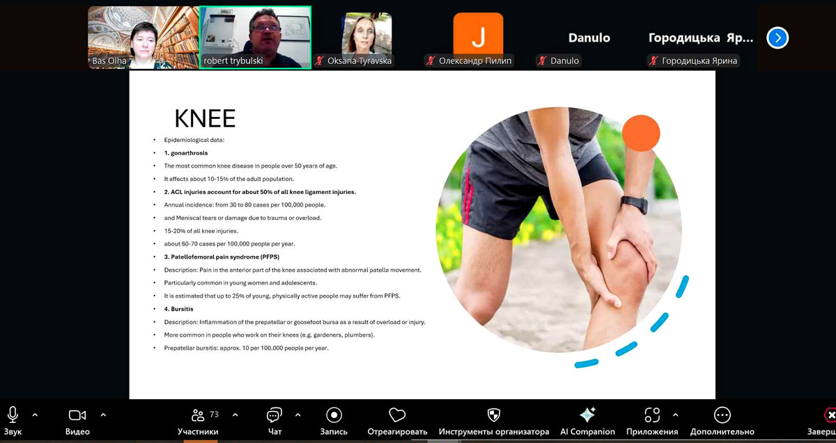 6 вересня 2025 року для студентів 3 курсу кафедри терапії та реабілітації ЛДУФК імені І. Боберського (завідувачка доц. Гузій О.В.) відбулась сьома з тематичного циклу англомовна гостьова лекція кандидата наук, доцента, Верхньосілезької академії в Катовіце, власника медичної клініки Provita, фізичного терапевта та нашого багаторічного друга і партнера з Польщі Роберта Трибульського на тему «Фізіотерапевтична діагностика (УЗД), як складова реабілітаційного процесу».