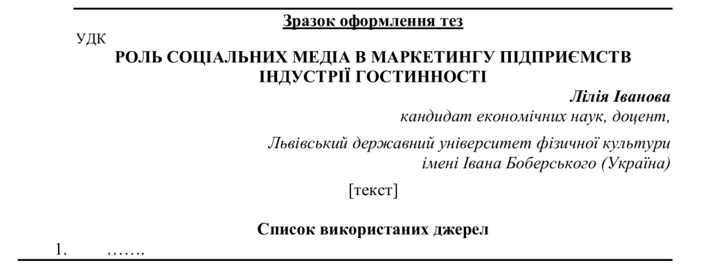 Вимоги до оформлення тез: